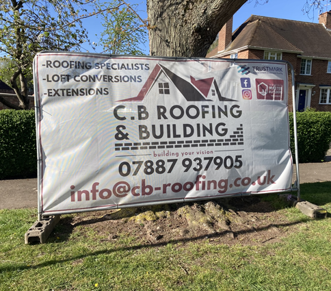xDurable, weather-resistant banners with reinforced hems, eyelets, and pole pockets—perfect for high-impact branding on building sites.